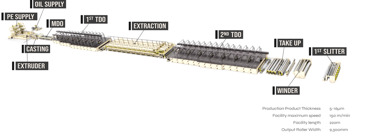 ST YOUNGWON’s DURONIC 9300 model is an ultra-wide wet-process separator production equipment for lithium-ion batteries, featuring an expanded width of 9300mm compared to the existing DURONIC 8300.